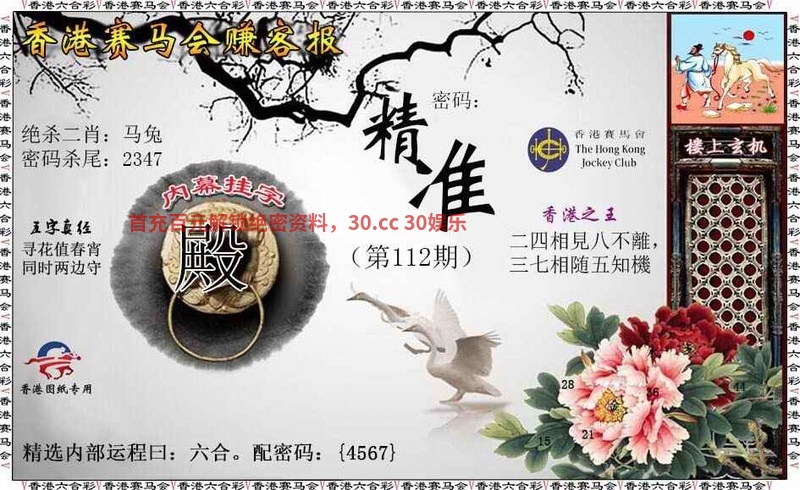115期:两版马会挂牌/展昭欲钱料/笔画定单双/港彩开门联/关门联